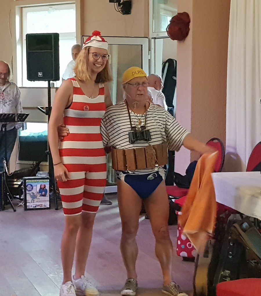 Für richtig gute musikalische Unterhaltung sorgten der Quartettverein und der Folkclub Ostangeln. Emma Nissen und Lothar Schindler überraschten die Anwesenden mit einem weiteren Highlight: Sie schlüpften spontan in historische Bademode und präsentierten diese souverän und mit viel Spaß auf dem „Laufsteg“. Mit Spannung wurde auch die Tombola verfolgt: ungefähr 200 Preise wurden ausgespielt, 800 Lose verkauft. Bei einem Lospreis von einem Euro sind allein durch diese Aktion 800 Euro zusammen gekommen.